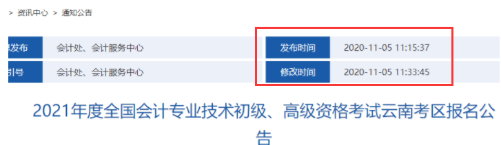 那么2022年云南初级会计报名简章什么时候公布?可参考2021年报名简章官方公布时间