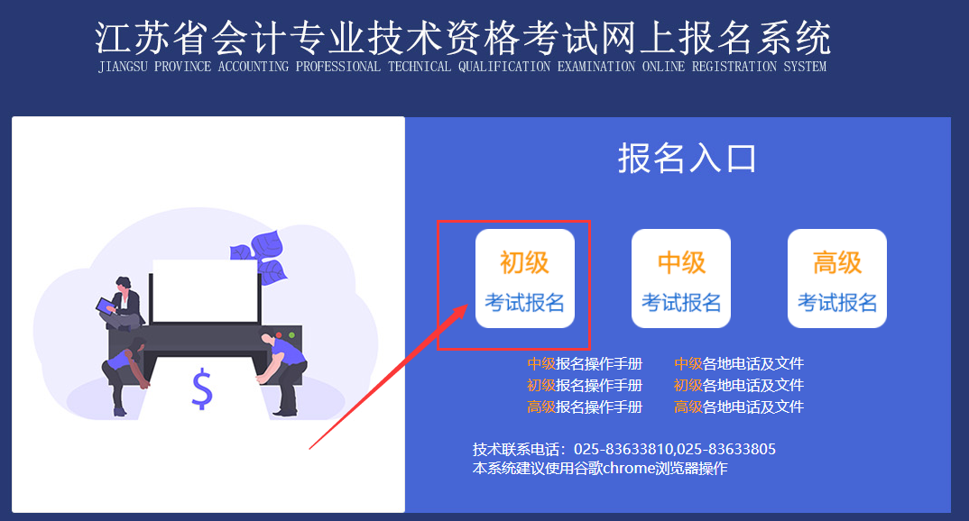 1.登录“江苏会计考试”,阅读操作手册和报名所在地报名文件;