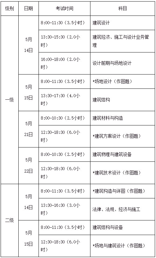 注:带*号的5个作图题科目的应试人员于考试前30分钟进入考场做准备。